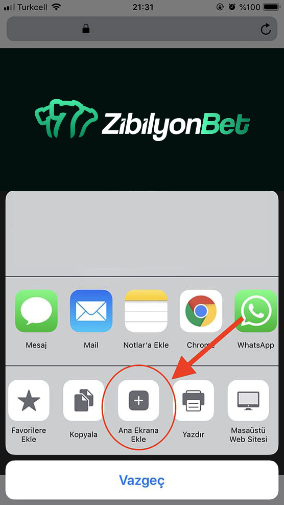 Açılan adreste iOS için "Paylaş" butonuna basın.