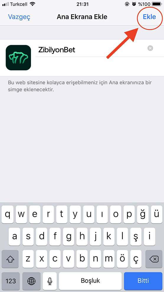 Gelen ekranda bulunan "Ekle" butonuna basın.